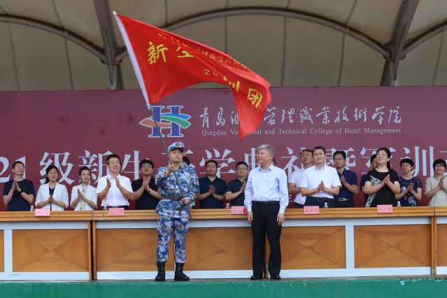 At the flag awarding ceremony, Li Da, Secretary of the Party Committee of the college, awarded the regiment flag to the freshmen military training group, officially opening the prelude to the 2021 freshmen military training.