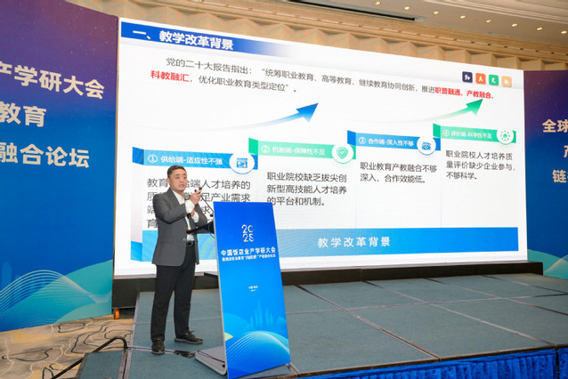 In his keynote speech, Diao Hongbin proposed the innovative talent training model for vocational education based on the industry-education integration concept of 'Enterprises Raise Questions, Universities and Enterprises Jointly Answer, and the Market Evaluates'. And he systematically explained the core connotation of this model, which is to transform real enterprise needs into teaching topics, set up a dual team of university and enterprise to jointly solve problems, and finally test the results of talent training through market benefits.