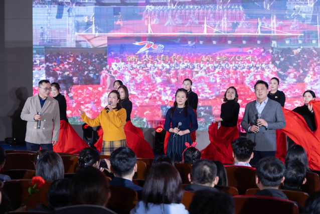 Salute by the School of Hotel Engineering was presented in an innovative form combining allegro songs and small chorus, eulogizing our development achievements and paying tribute to the hardworking faculty members and silently contributing workers; the small chorus We Are Marching on the Road aroused strong resonance among the on-site audience.